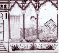 Miniatura no remate, dunha Cantiga de Santa María. Biblioteca Nacional de Florenza.